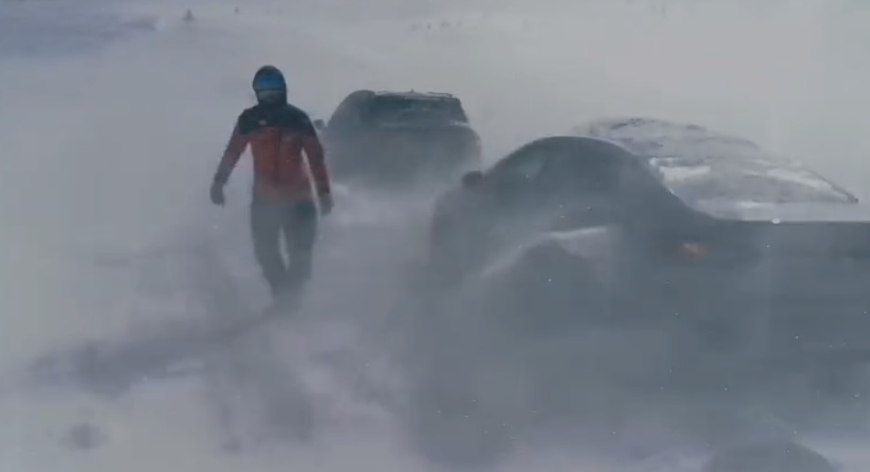 NEWS.ro: Gorj: Maşini blocate pe drumul din zona staţiunii Rânca. Vântul bate cu putere, formând troiene în apropierea vehiculelor care nu mai pot înainta – VIDEO
