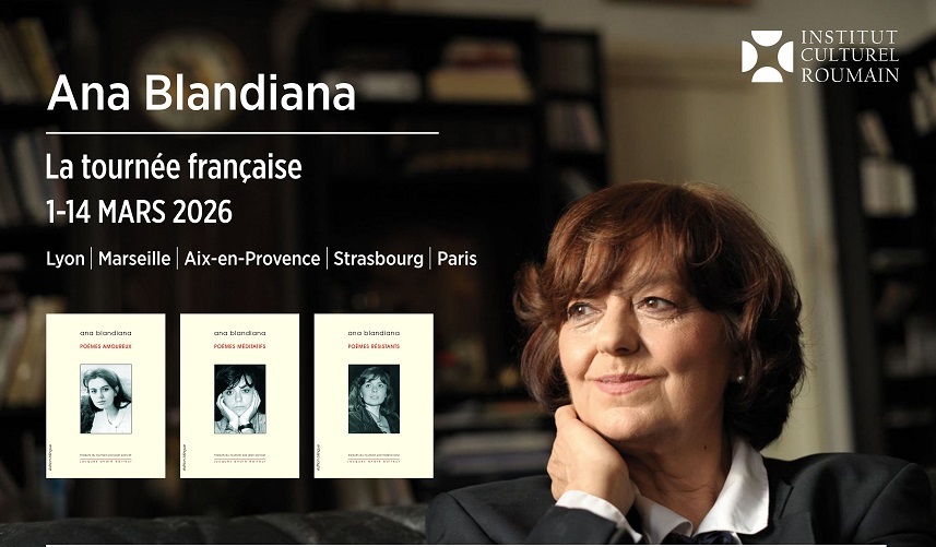 Scriitoarea Ana Blandiana se va afla, în perioada 1-14 martie, în Franţa pentru un turneu amplu, cu ocazia apariţiei, în condiţii grafice deosebite, a trilogiei bilingve compuse din volumele “Poèmes résistants, Poèmes amoureux şi Poèmes méditatifs” (Jacques André Éditeur, 2024-2026).