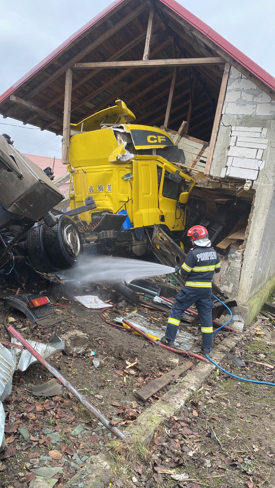 Un TIR a intrat, duminică, într-o casă din satul Oniscani, judeţul Bacău, afectând structura de rezistenţă a clădirii. La momentul accidentului, în locuinţă nu se afla nimeni. Şoferul autotrenului a reuşit să iasă singur.